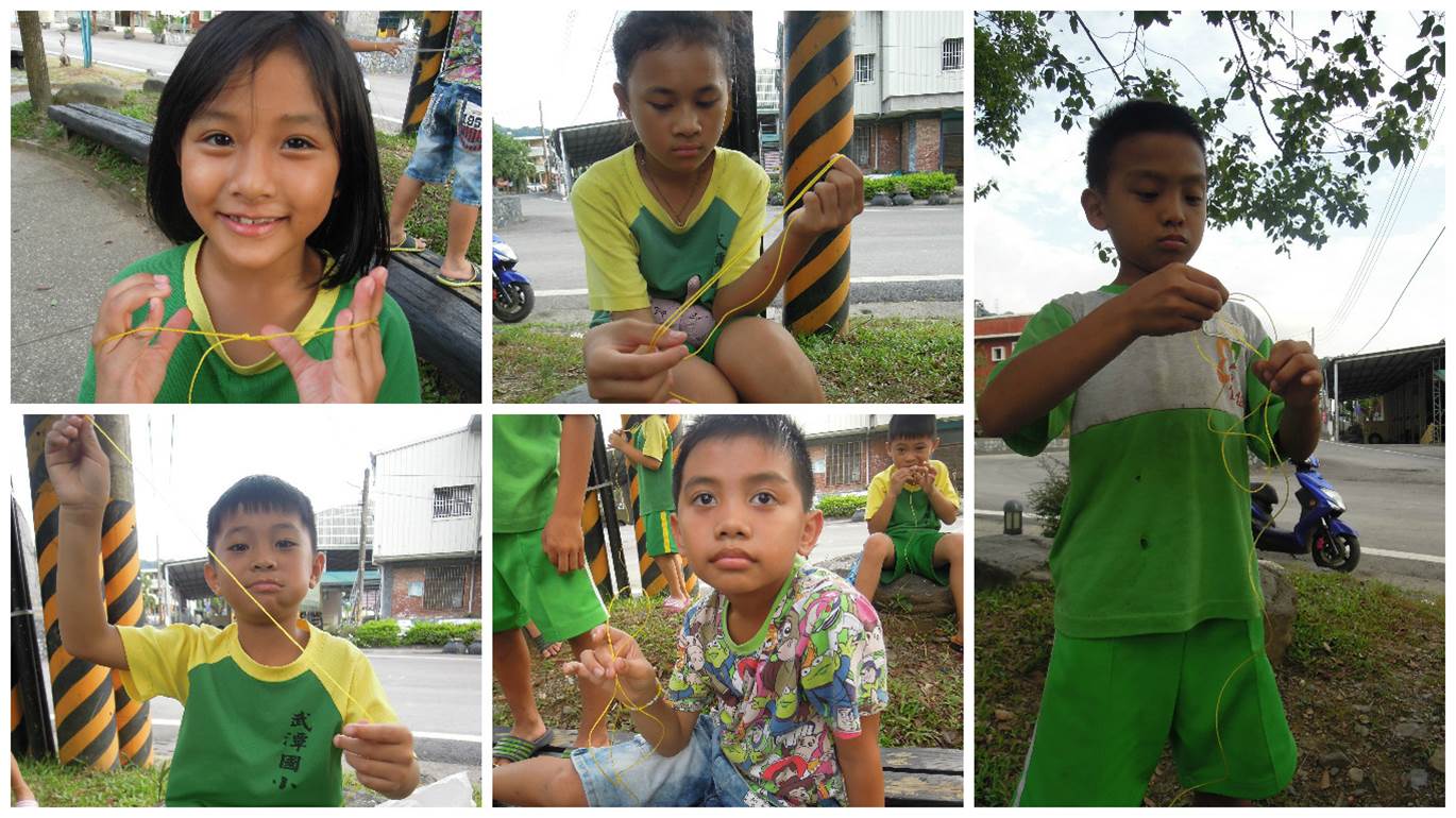 我們努力一起討論要如何打結如何繞圈圈呢?大家都一起互相幫忙對方要如何完成