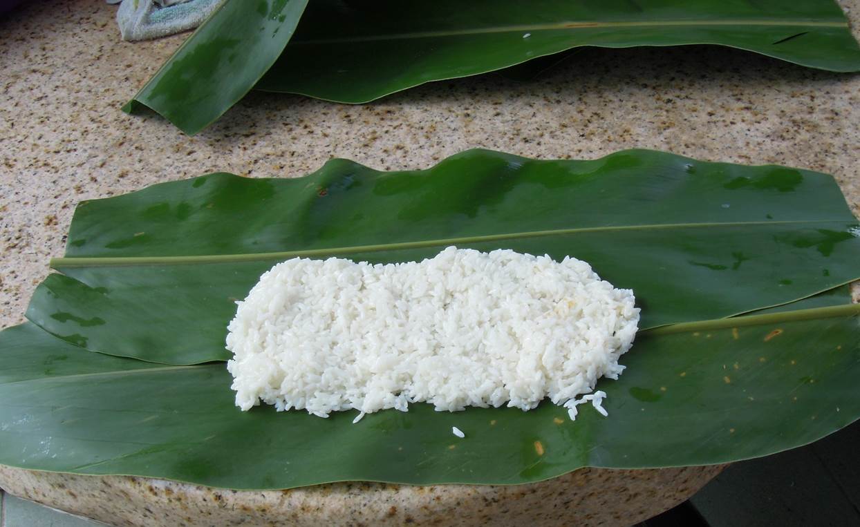 月桃葉、糯米、五花肉(鹽巴、醬油、油蔥酥)、蘆葦